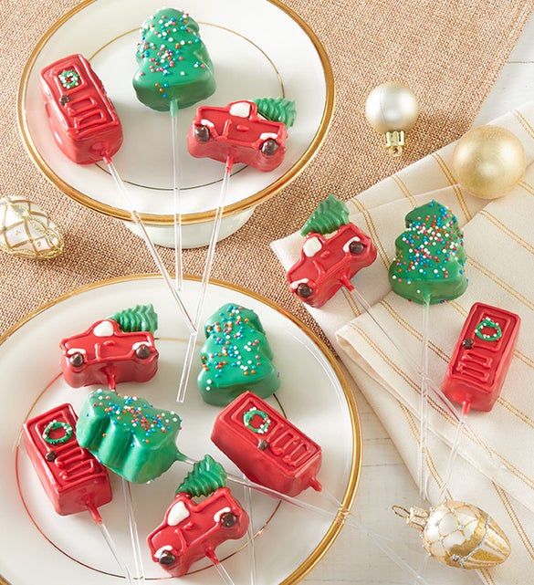 Celebrate the season with our delightful Holiday Cake Pops, available in packs of six or twelve. Each pop is lovingly crafted from rich chocolate cake and decorated in charming holiday designs, including festive trees, cozy doors, and classic trucks. Perfect for sharing at parties, gifting, or adding a sweet touch to your holiday gatherings, these cake pops bring both whimsy and deliciousness to every bite. Enjoy a festive treat that’s as fun to look at as it is to eat!
